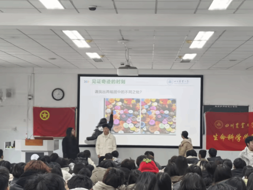 讲座以互动游戏开场。刘露邀请两名学员担任“观察员”,引导大家通过轻松的图像比对,感受“目标感”对个人状态的影响,启发学生认识到规划与目标在大学生活中的重要性,并由此引入政策解读主题。
