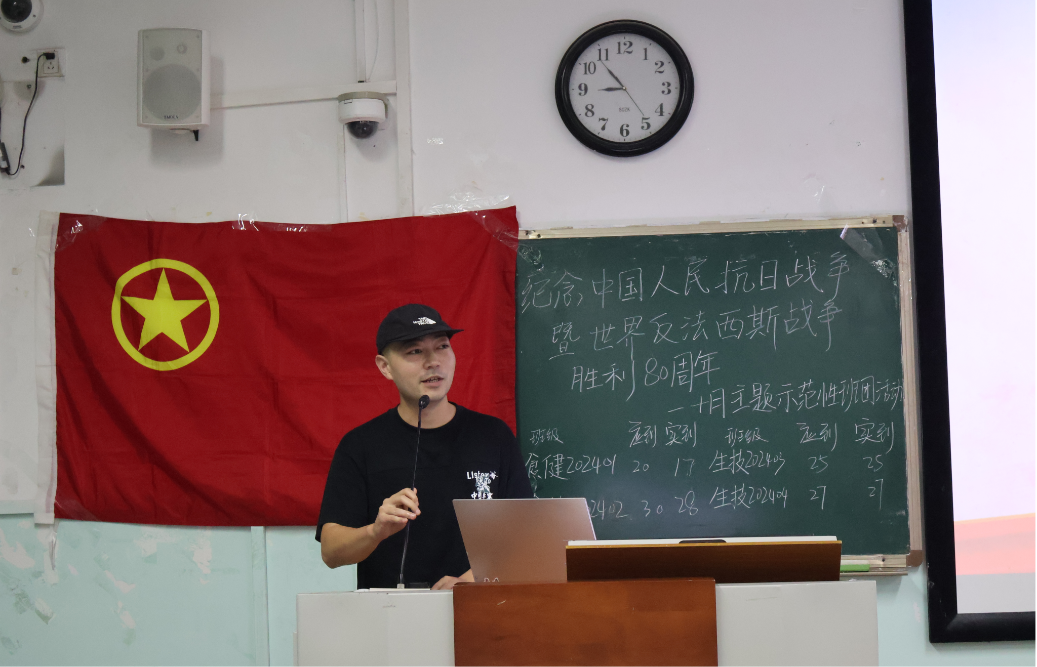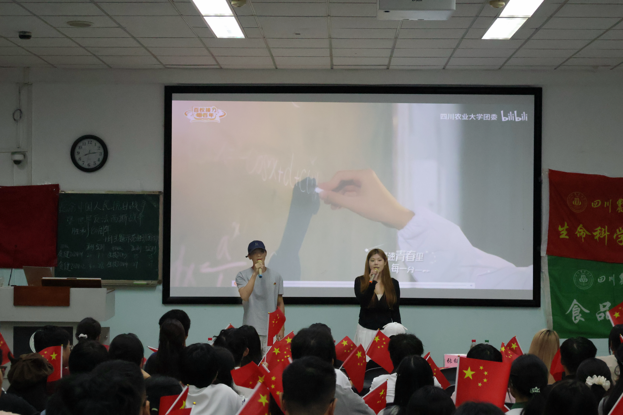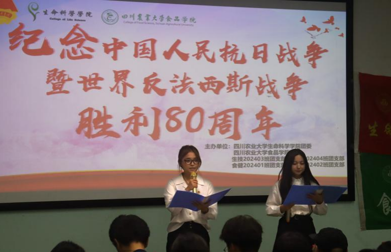 为深入学习贯彻习近平总书记关于抗战胜利80周年的重要讲话精神,引导青年学子厚植家国情怀、传承红色基因、勇担时代使命,10月10日,四川农业大学食品学院、生命科学学院团委直属流动团支部联合食健202401、02班团支部,生技202403、04班团支部,共同举办“纪念中国人民抗日战争暨世界反法西斯战争胜利80周年”主题示范性班团活动。182名青年学子齐聚一堂,在六大特色环节中接受思想洗礼、凝聚青春力量。