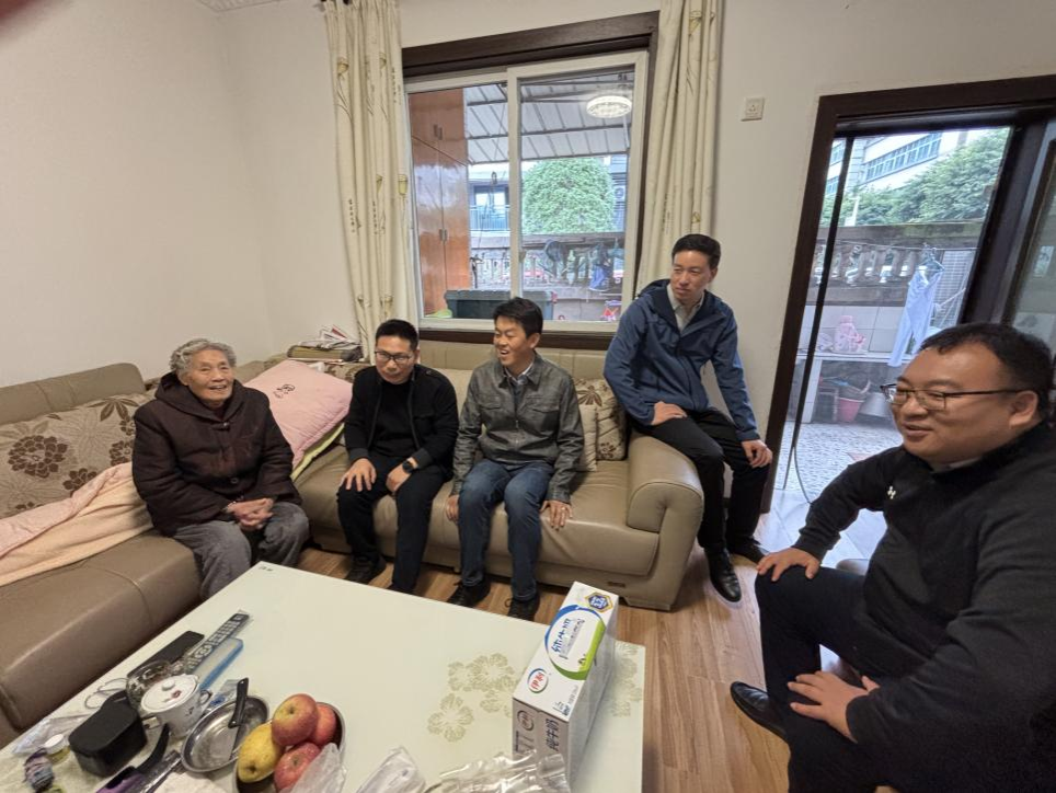 随后,慰问组逐一走访了居住在家中的李素芬、郭大智、杨婉身等九位退休教师。每到一处,朱长文和刘贺贺都与老教师们促膝交谈,详细了解他们的生活起居与身体状况,并介绍了学院近年来取得的成绩与未来发展规划。他们表示,老教师是学院的宝贵财富,学院今日的发展离不开老一辈教师的辛勤耕耘与无私奉献,希望大家保重身体,一如既往地关心和支持学院工作。