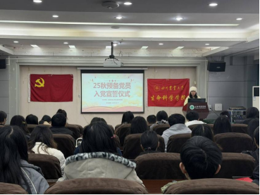 12月17日中午,生命科学学院在12-109举行2025年下半年预备党员入党宣誓仪式。学院党委书记刘杨,党委副书记、纪委书记朱长文,党委办公室老师彭雪、刘露,各学生党支部书记、入党介绍人及全体2025年下半年新接收预备党员参加仪式。仪式由彭雪主持。