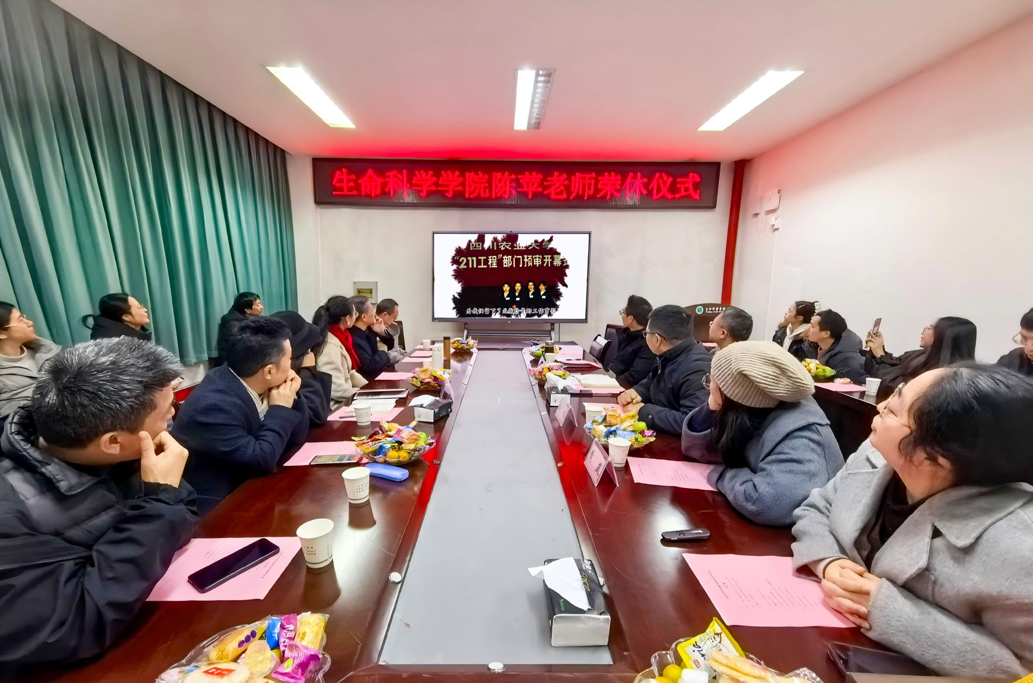 1月6日上午,我院在雅安校区生命科学楼会议室举行陈苹老师荣休仪式。学院院长刘江、党委书记刘杨、副院长黄燕及各系室教师代表参加仪式。党委副书记朱长文主持仪式。