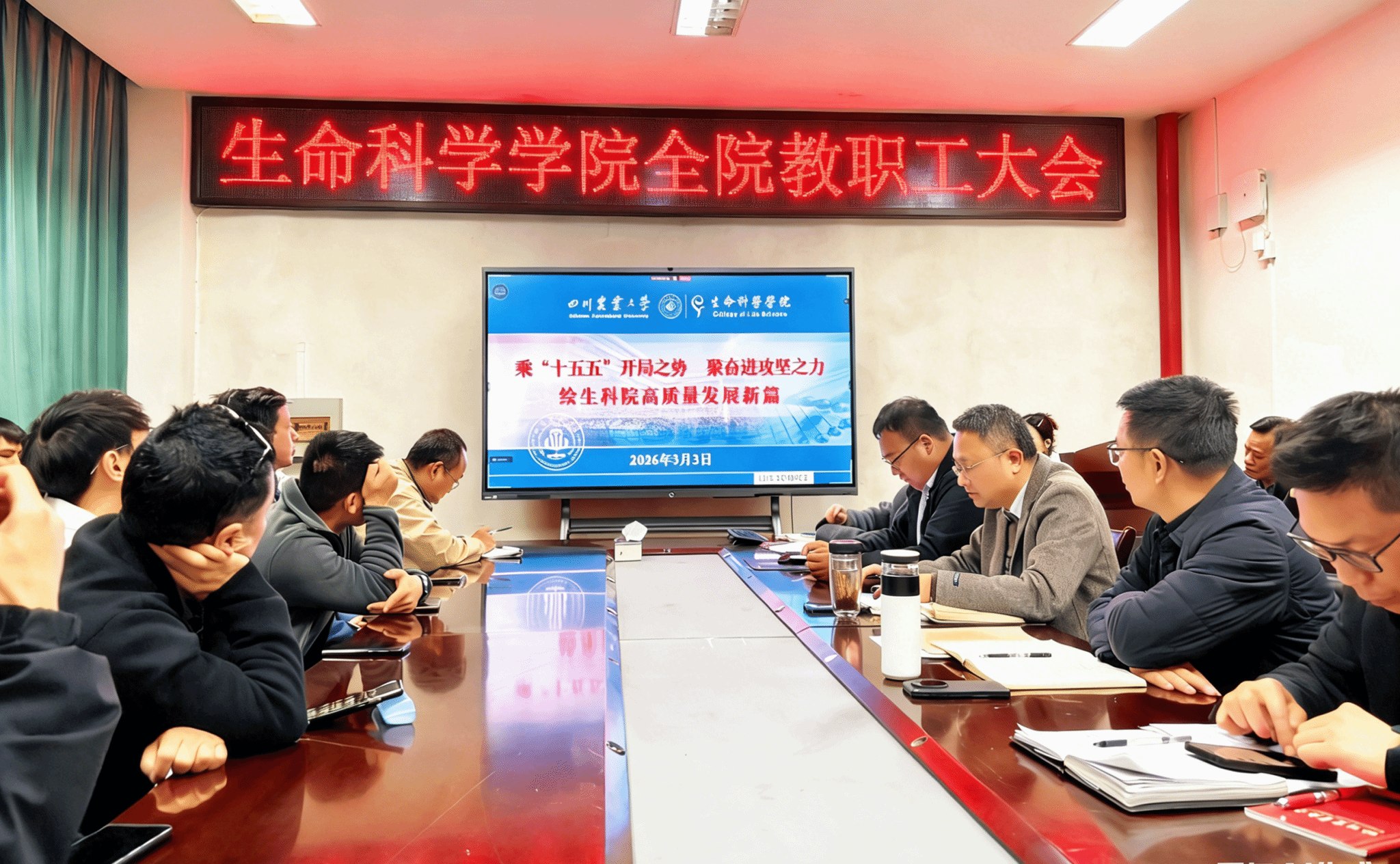 3月3日,生命科学学院召开教职工大会,传达学校相关会议精神,安排部署2026年各项重点工作。学院全体教职工参会,会议由副院长黄燕主持。