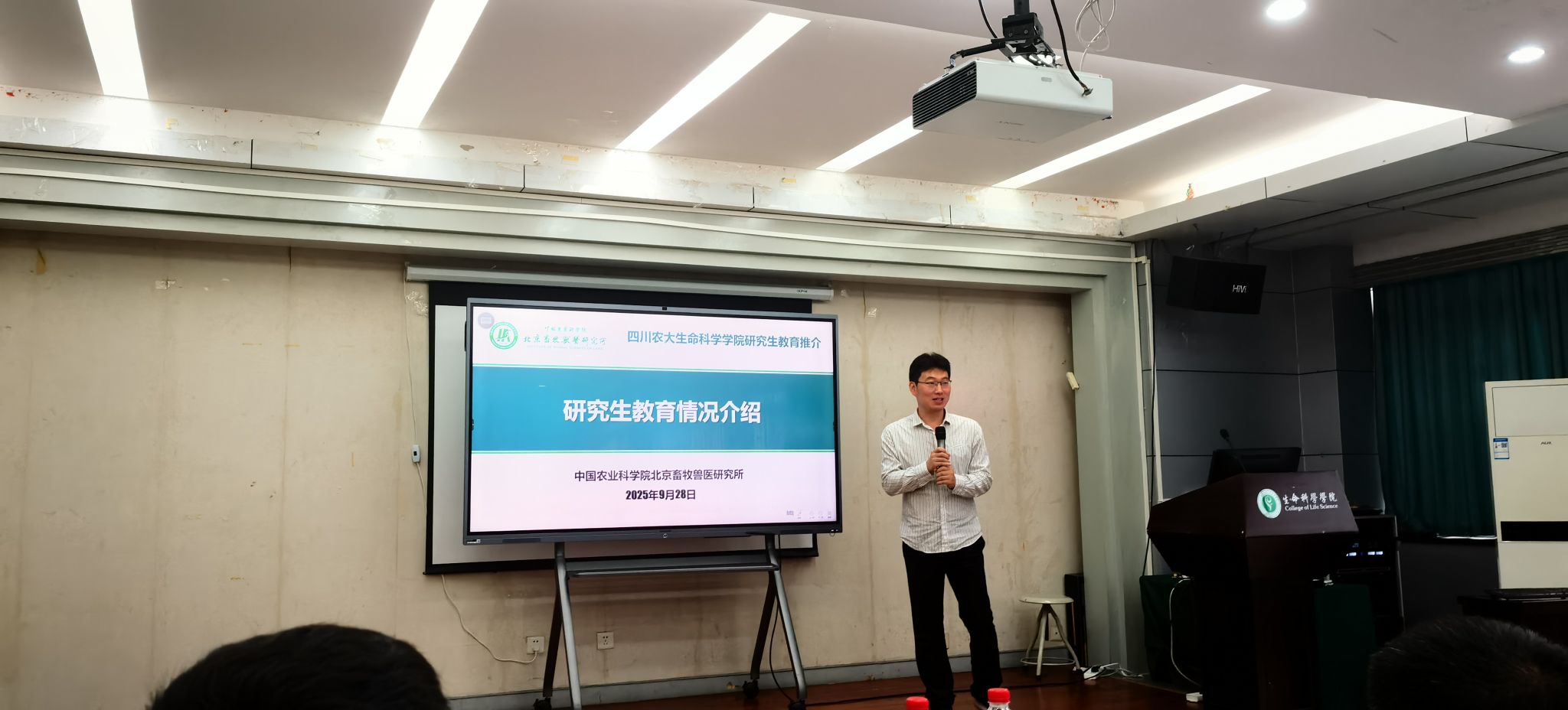 王皓宇老师详细介绍了北京畜牧兽医研究所的科研平台与研究生培养体系。在互动环节,三位专家与现场师生围绕体外蛋白质高效合成策略、克隆技术在种质资源保护中的实际应用、研究生科研规划等话题展开了热烈而深入的交流,为师生拓宽科研视野、优化学术成长路径带来诸多启发。
