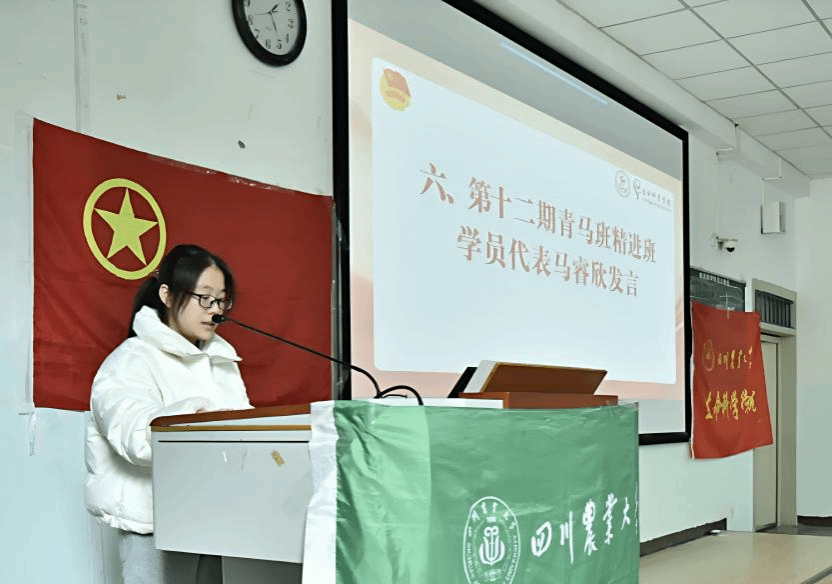 第十二期青马班新学员代表、生命科学学院生物工程专业马睿欣同学在发言中表达了新时代青年勤学笃行、听党话、跟党走的坚定决心,展现了学员们矢志锤炼本领、报效祖国的昂扬风貌。