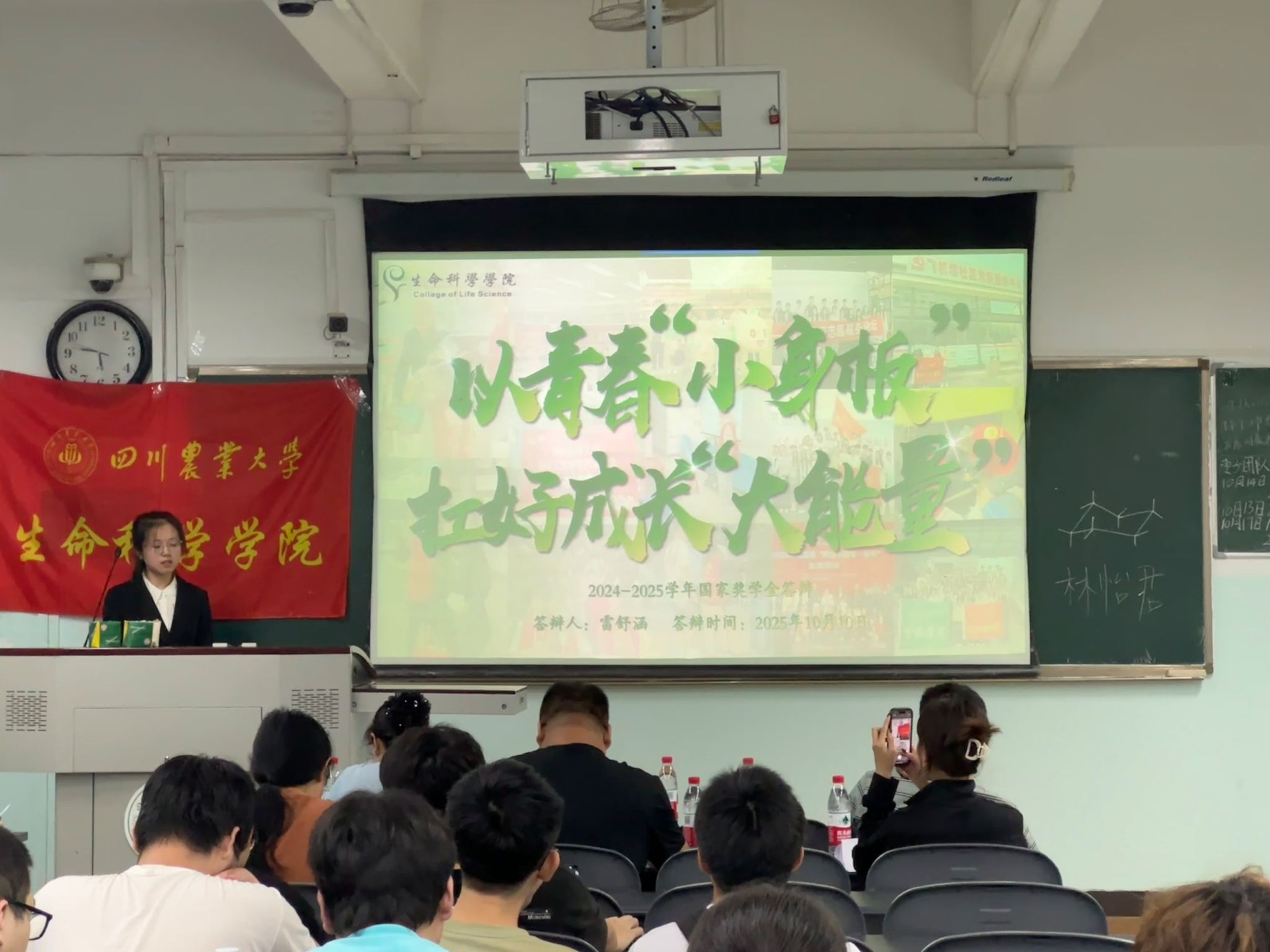 10月10日,生命科学学院2025年本科生国家奖学金答辩评审于第十教学楼A311教室举行。学院党委副书记朱长文、副院长黄燕、副院长刘贺贺、行政办公室副主任鄢思利、党委办公室副主任程子彰以及辅导员代表、学生代表共同担任评委。共10位优秀候选人入围最终答辩,各年级60余名学生到场观摩学习。